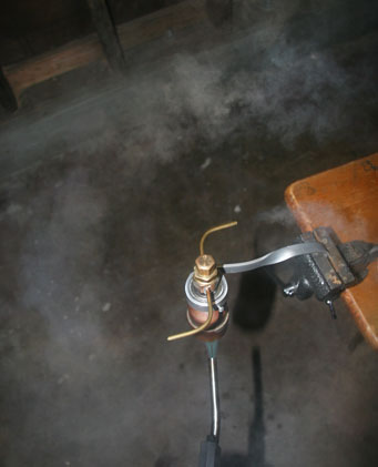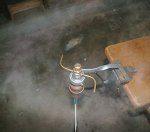I built this Hero's Engine with plumbing parts from my local hardware store and a ball bearing. It works very well, but could probably be improved by using a lower friction type of bearing.